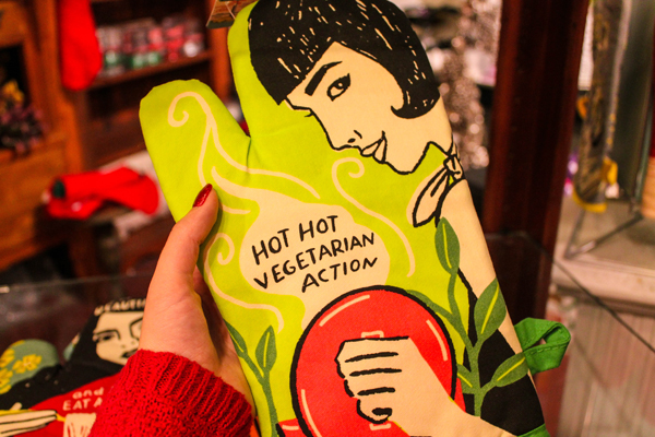 Do you know a vegetarian who is always whipping up the most delicious meat-free recipes with pride? Now they can cook with a smile while they wear this adorable oven mitt. You can get it from a shop called Fete-ish. (Don’t be fooled by the play on words in the name, they just sell funny, quirky gifts!)