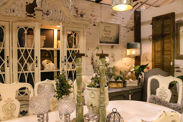 To make the larger furniture pieces even more appealing, most of the vendors stock their booths with innovative home décor items. If you like mason jars, Edison bulbs, flowers, china, and calligraphy, you won’t be disappointed.